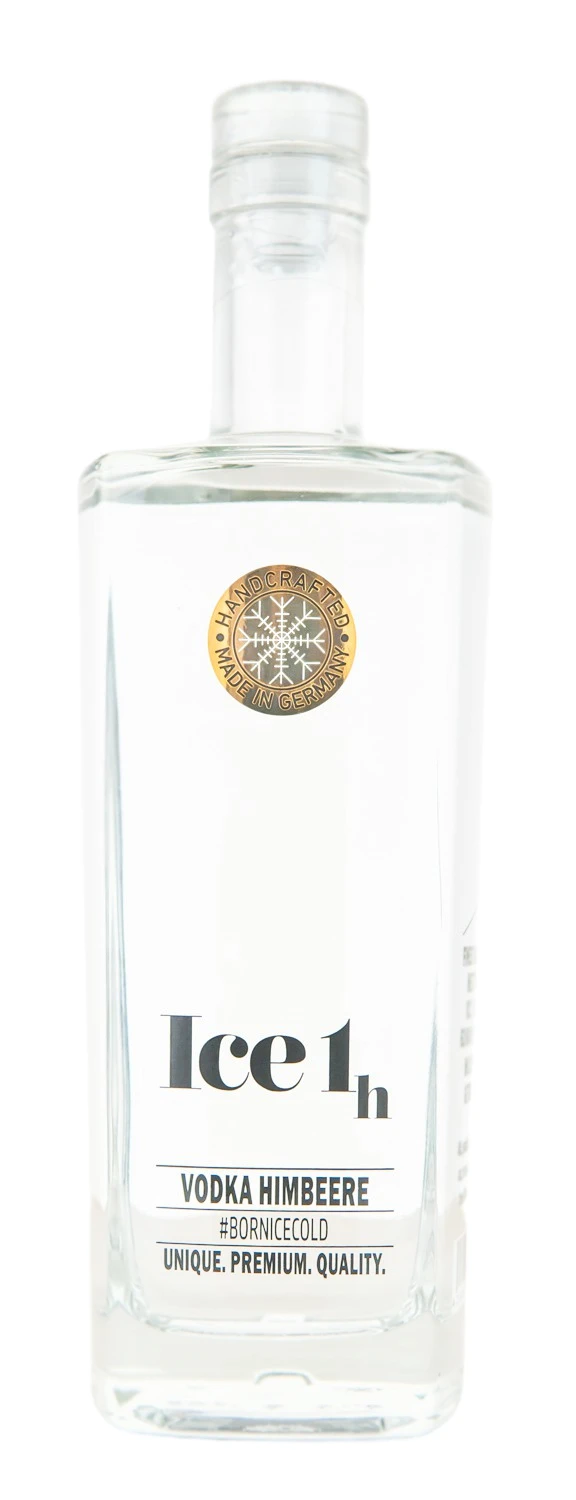 Der Ice 1h Raspberry Vodka kombiniert den außergewöhnlichen Geschmack des Ice 1h Wodkas mit den süßen und fruchtigen Aromen reifer Himbeeren. Die Basis des Ice 1h Raspberry Vodkas wird durch ein Kälte-Differenz-Verfahren aus deutschem Bio-Weizen-Ethanol und isländischem Gletschereis hergestellt. Der hochwertige Wodka wird für den Ice 1h Raspberry Vodka mit erntefrischen Himbeeren angereichert, was ihm ganz natürlich mit Aromen anreichert. Der Ice 1h Raspberry Vodka kann sowohl pur getrunken als auch für die Zubereitung von Cocktails und Longdrinks verwendet werden.