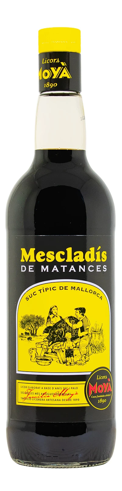 Mescladis de Matances Moya – 1 Liter 32% vol vereint jahrhundertealte mallorquinische Traditionen mit einem einzigartigen Geschmackserlebnis. Hergestellt von Licors Moyà, einem Familienunternehmen mit Sitz in Artà, Mallorca, ist dieser Likör ein wahrer Ausdruck des kulturellen Erbes der Insel.