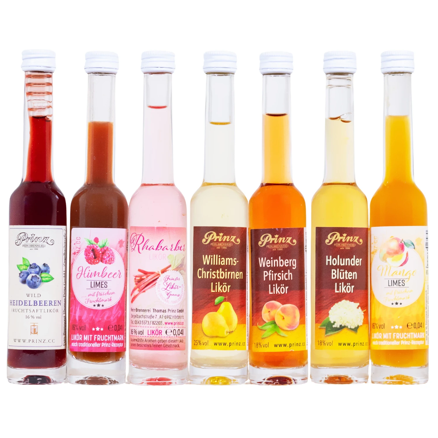 Die klassischen Prinz Traditionsliköre wie Williams-Christbirnen, Weinberg Pfirsiche und Holunderblüten überzeugen mit erlesenen Zutaten, hohem Fruchtsaftanteil und vollem Geschmack. Die fruchtigen Limes, hergestellt aus frischem Fruchtmark und bestem Destillat, verleihen jedem Drink eine köstlich fruchtige Note.